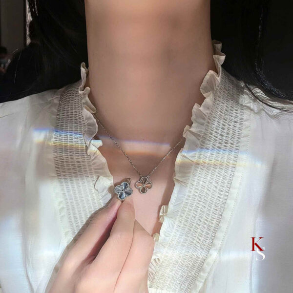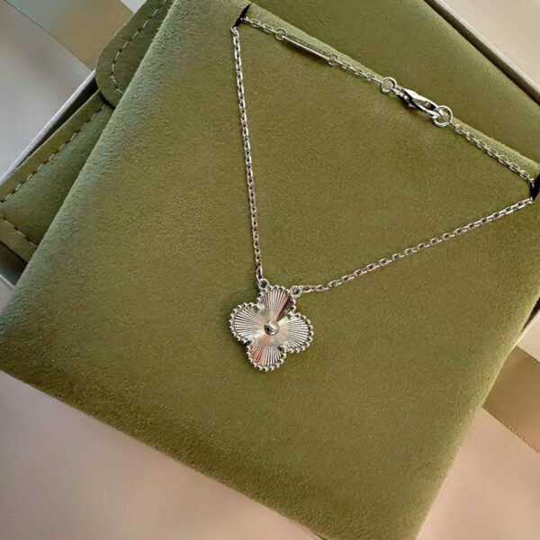 KSJ Dây Chuyền Bạc Nữ Van Cleef & Arpels Vintage Alhambra Guilloché Cỏ 4 Lá Hoa Phay Điểm Nhụy Trơn Kim Cương Nhân Tạo – KL0575TRON – Trang sức Brands
